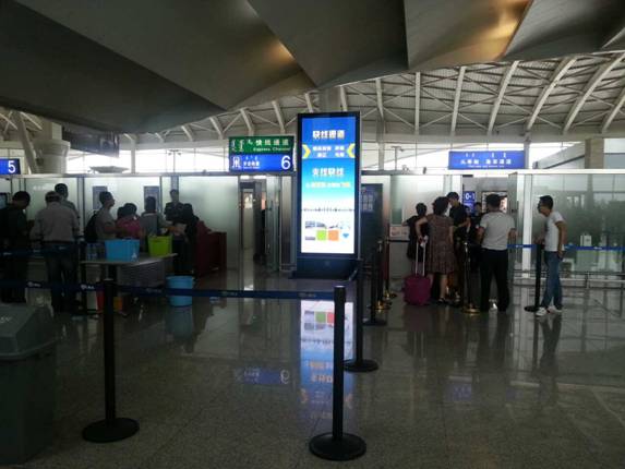 我公司兩臺終端分別布放在呼和浩特白塔機場二樓安檢口,急客通道安檢口。觀賞位置醒目、高端客戶人群集中,能夠為企業(yè)形象宣傳起到非常好的角色作用。呼和浩特白塔國際機場作為內蒙古自治區(qū)要塞空中門戶,是國內重要干線機場,現在通往國內外的航線有89條,通往城市多達44個,每周出港航班平均為502個。每年客戶吞吐量達400萬人次。呼和浩特白塔國際機場是商家、廠家各名牌企業(yè)推廣宣傳的首選。